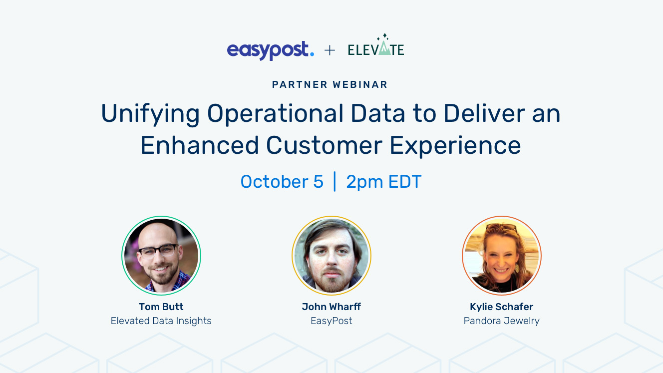 EasyPost teams up with our partner Elevate, a unified data platform, for an upcoming live webinar on Oct. 5th at 2 pm ET. Even if you can’t make the live session, make sure to register anyway and we’ll send you a link to the recording.