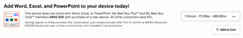 Example: The Best Buy checkout page for a laptop offers a discount subscription to Microsoft Word, Excel, and PowerPoint.
