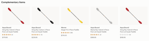 Example: On an REI product page for a kayak, they include a “Complementary Items” carousel featuring different paddles, and the product page for a tent has a “You may also like” section with various tent accessories.